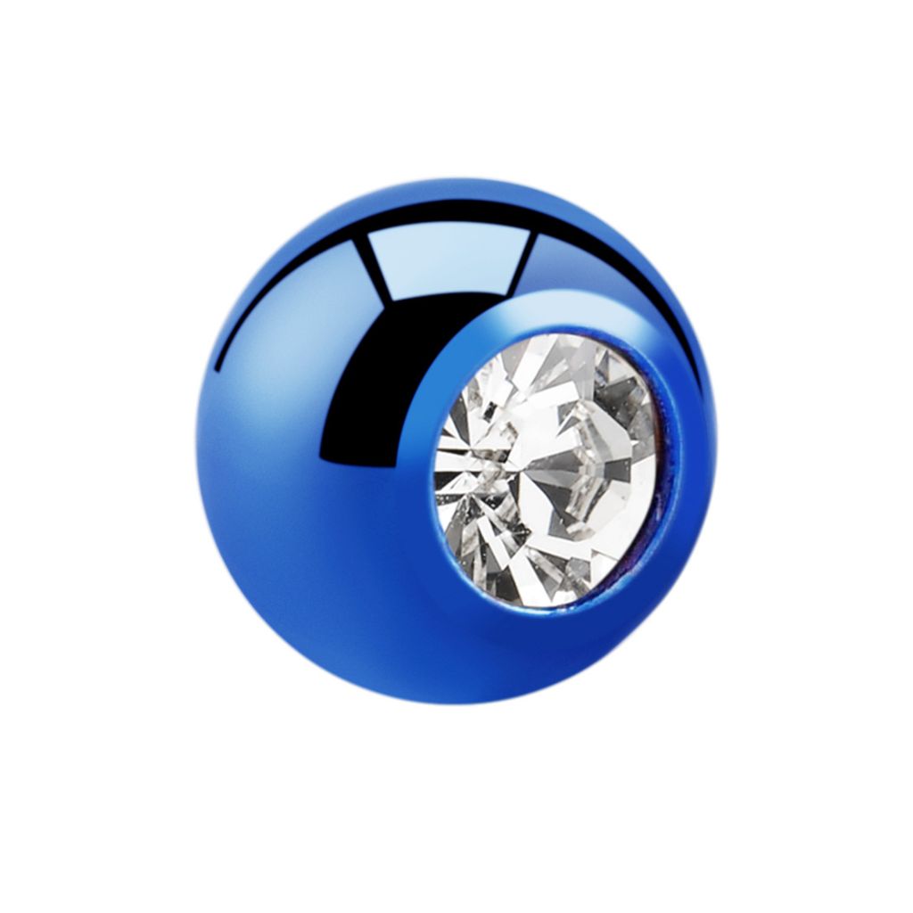 Sfere anodizzate in titanio eli con pietra cristallo. Filetto 1.6mm compatibile con tutta la nostra gioielleria. Diametro Sfera: 5mm.